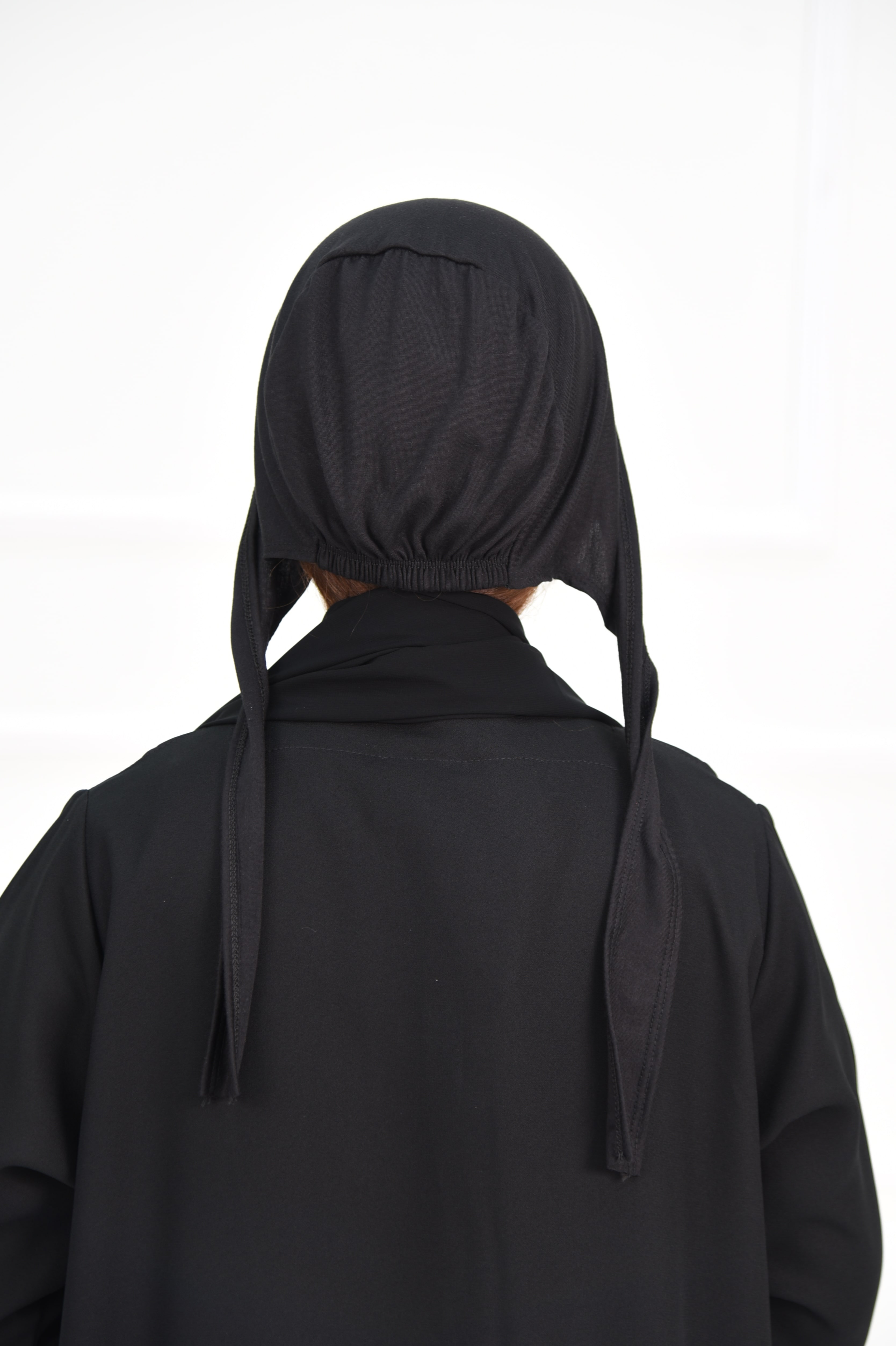 بندانة سوداء قطنية بربطة | بطانة حجاب