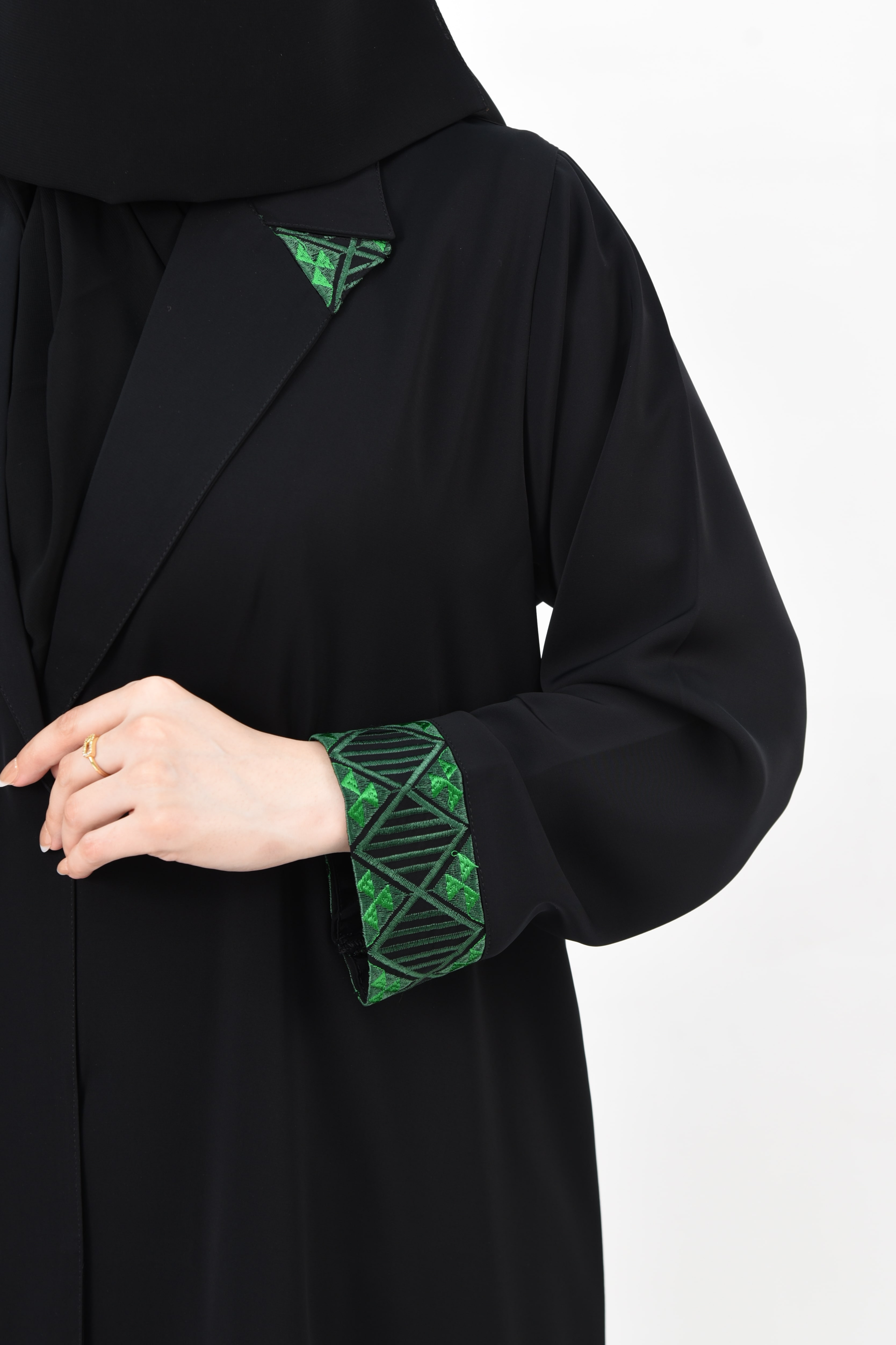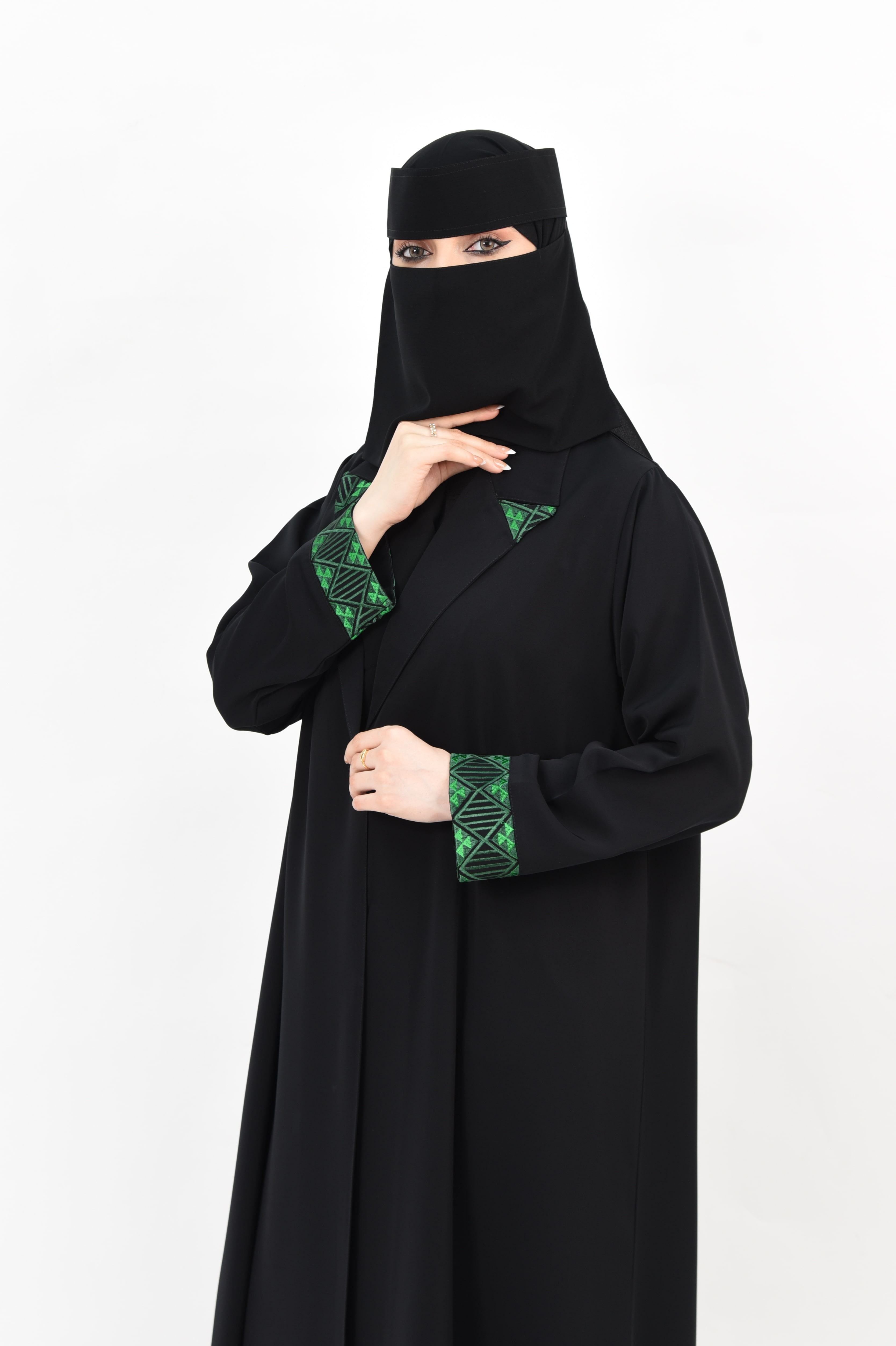 وصف العباية: عباية فاخرة صممت خصيصًا لليوم الوطني، بتطريز كمبيوتر دقيق يزين الياقة والأكمام بلون أخضر يعكس هوية الوطن وعمق الانتماء، لتمنحك إطلالة أنيقة تنبض بالفخر وتعبر عن محبتك لوطنك بكل رقي واعتزاز.