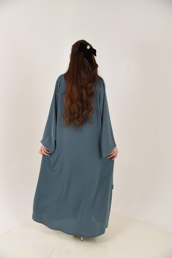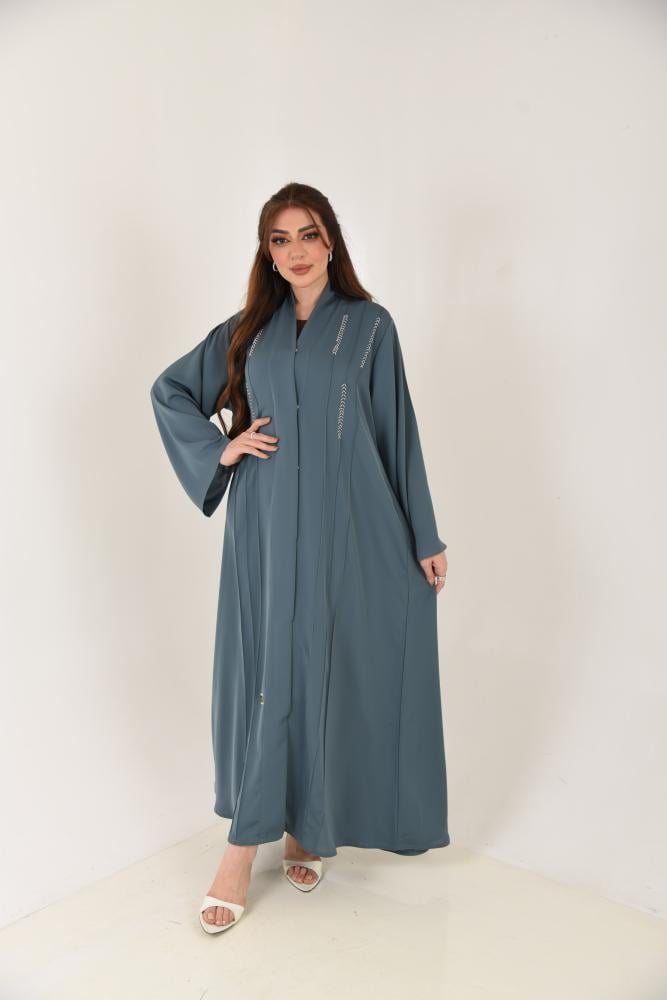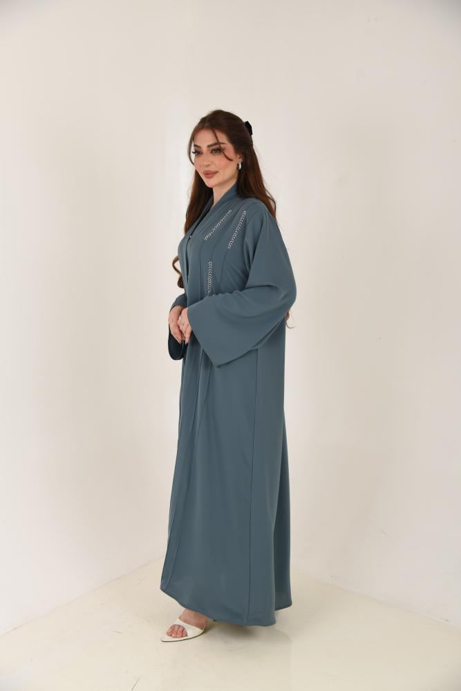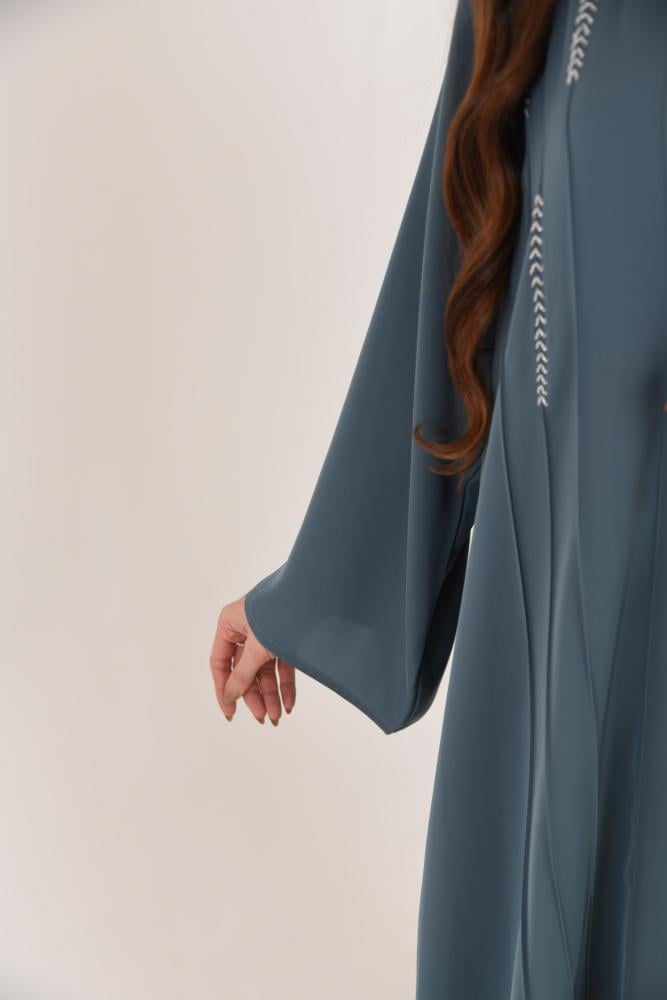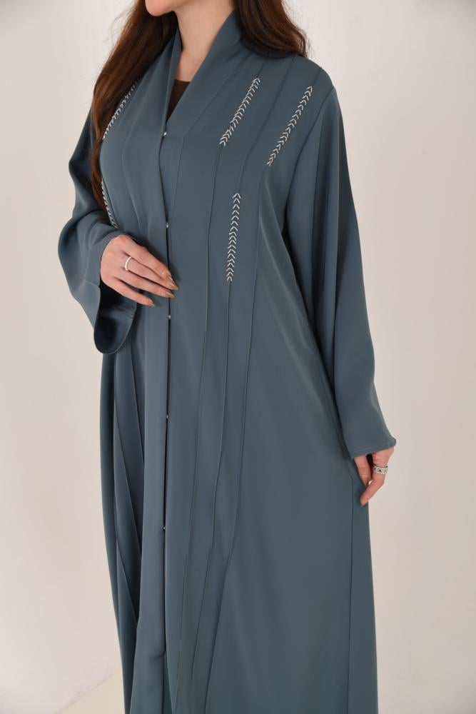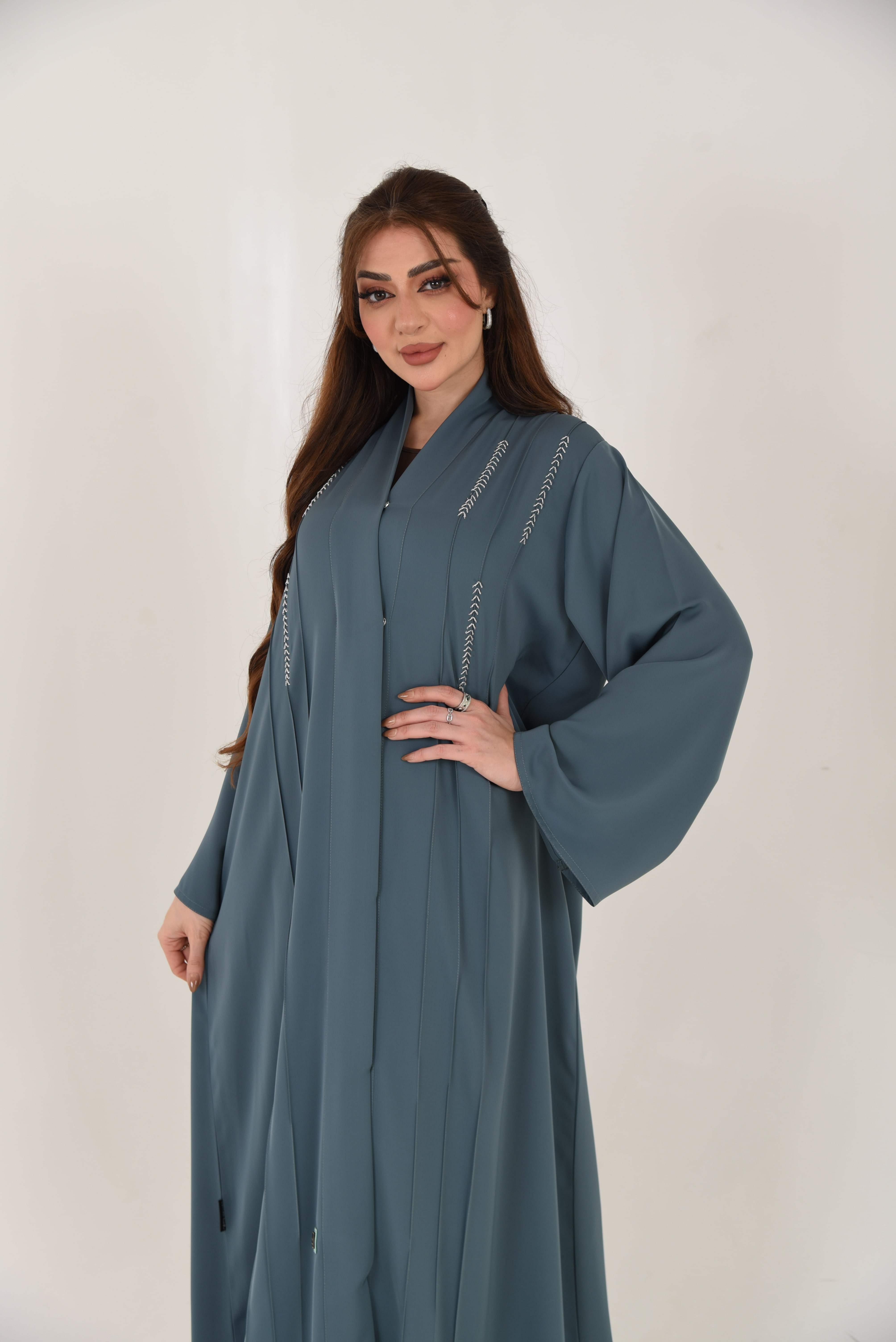 عباية بلون اخضر ناعمة بتطريز شك أنيق على الصدر والأكمام
