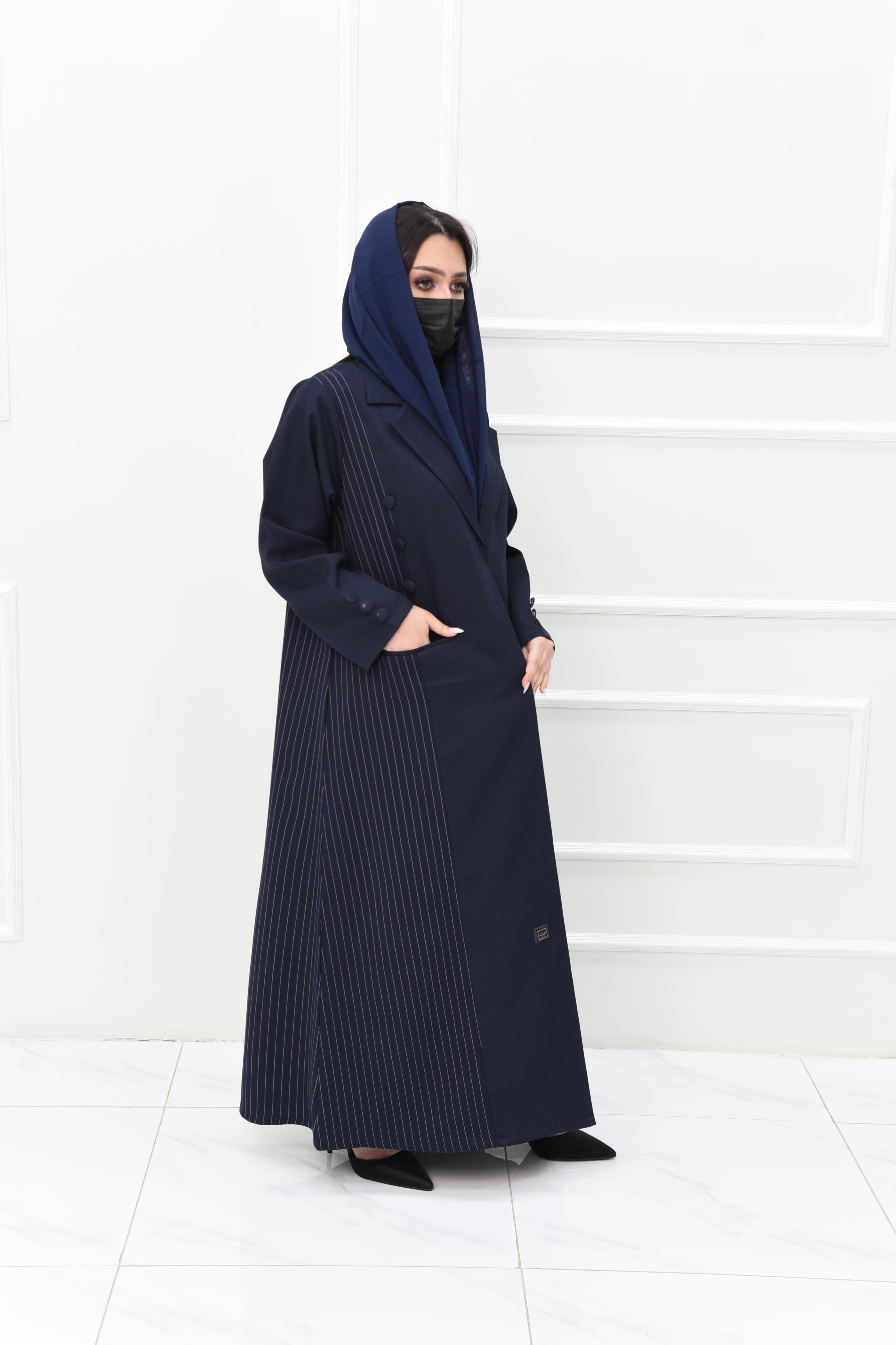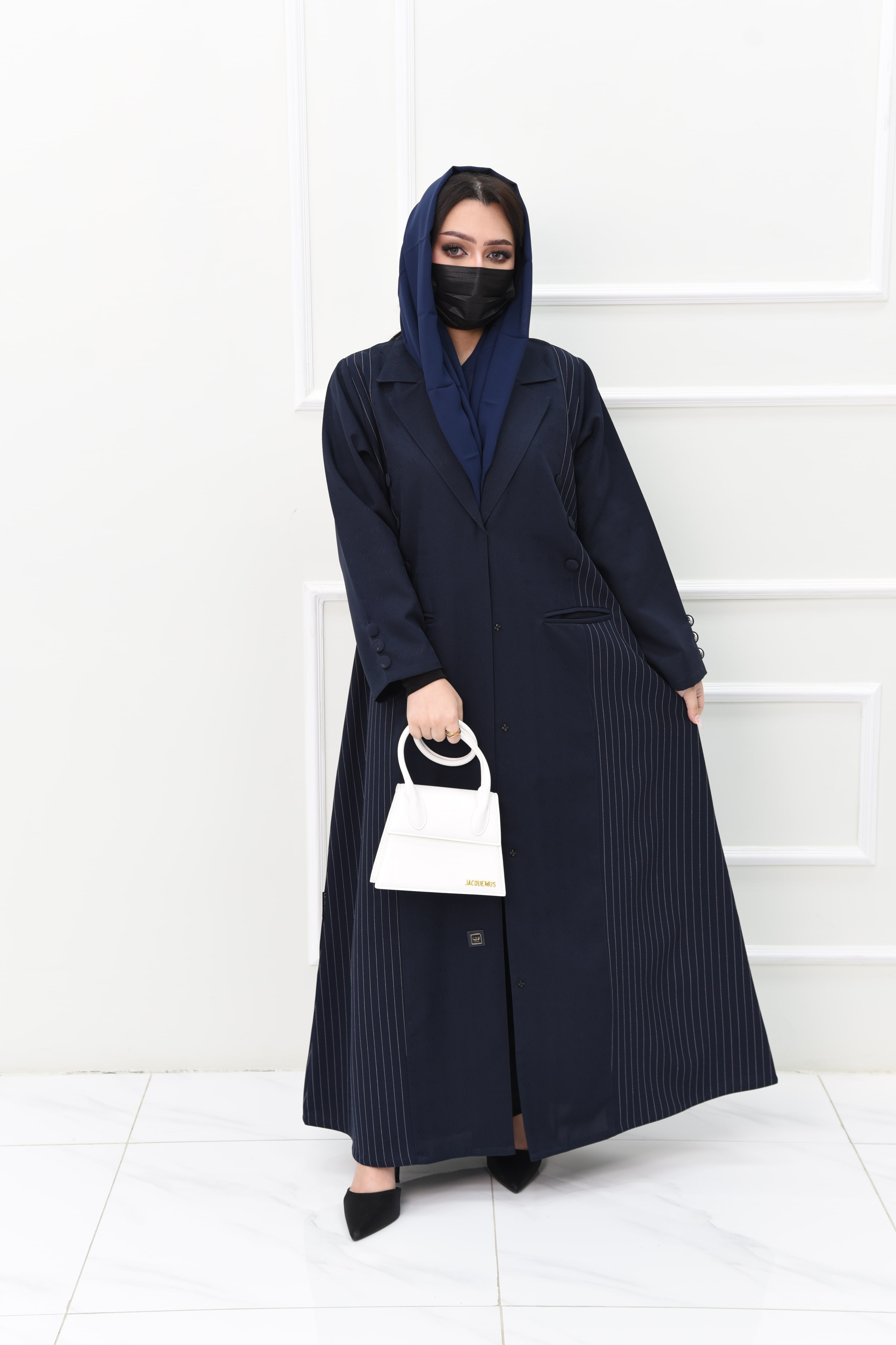 وصف العباية: عباية بنمط البليزر أنيقة، مصممة من قماش كحلي فاخر مع تقليمات مميزة تزين الجوانب، مما يضفي عليها لمسة من الفخامة. صُممت من قماش الكريب، ليمنحكِ إطلالة راقية تجمع بين الأناقة والتميز.