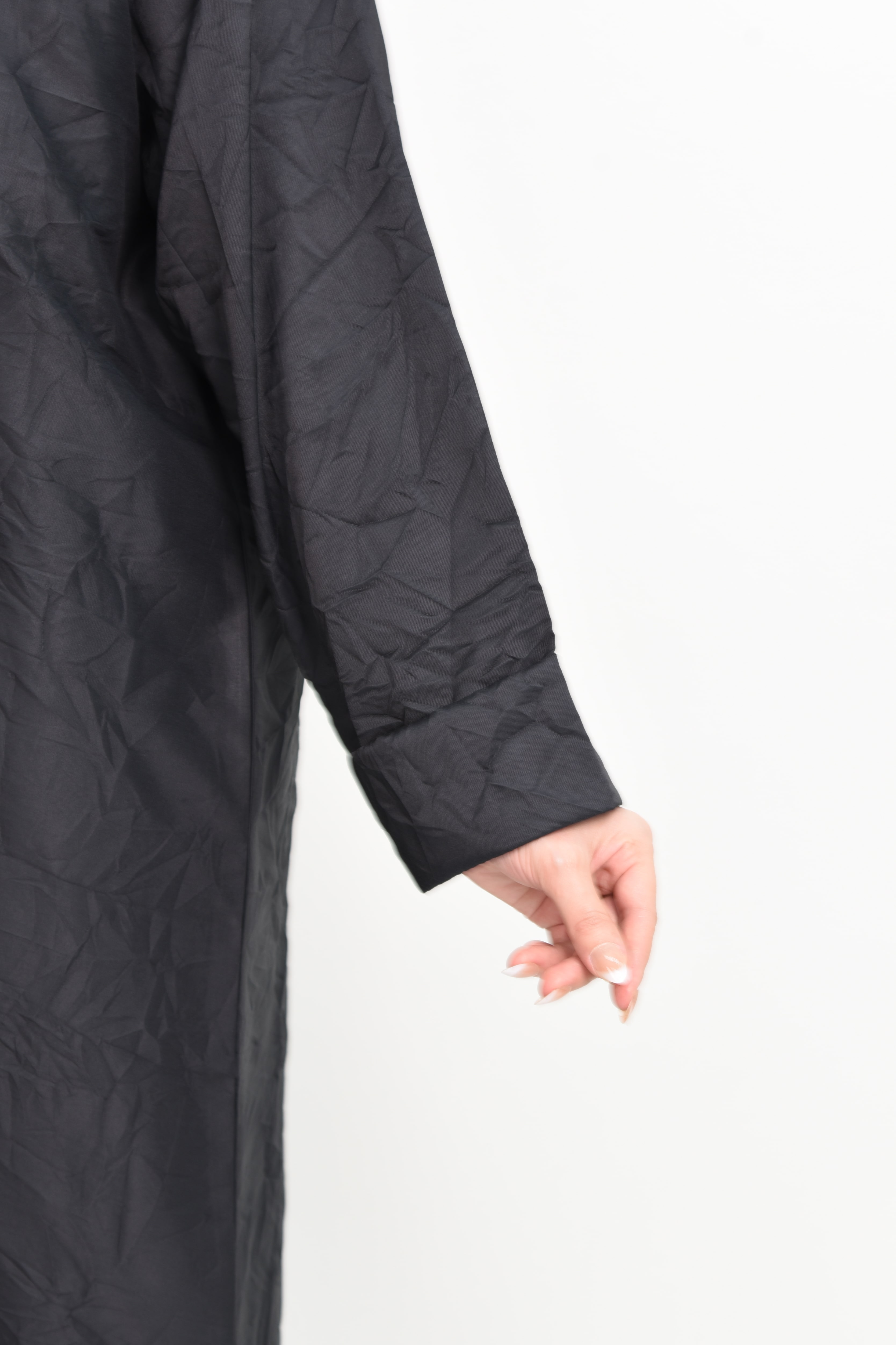عباية تفتة مطفي بلون اسود فاحم وأكمام مقلوبة