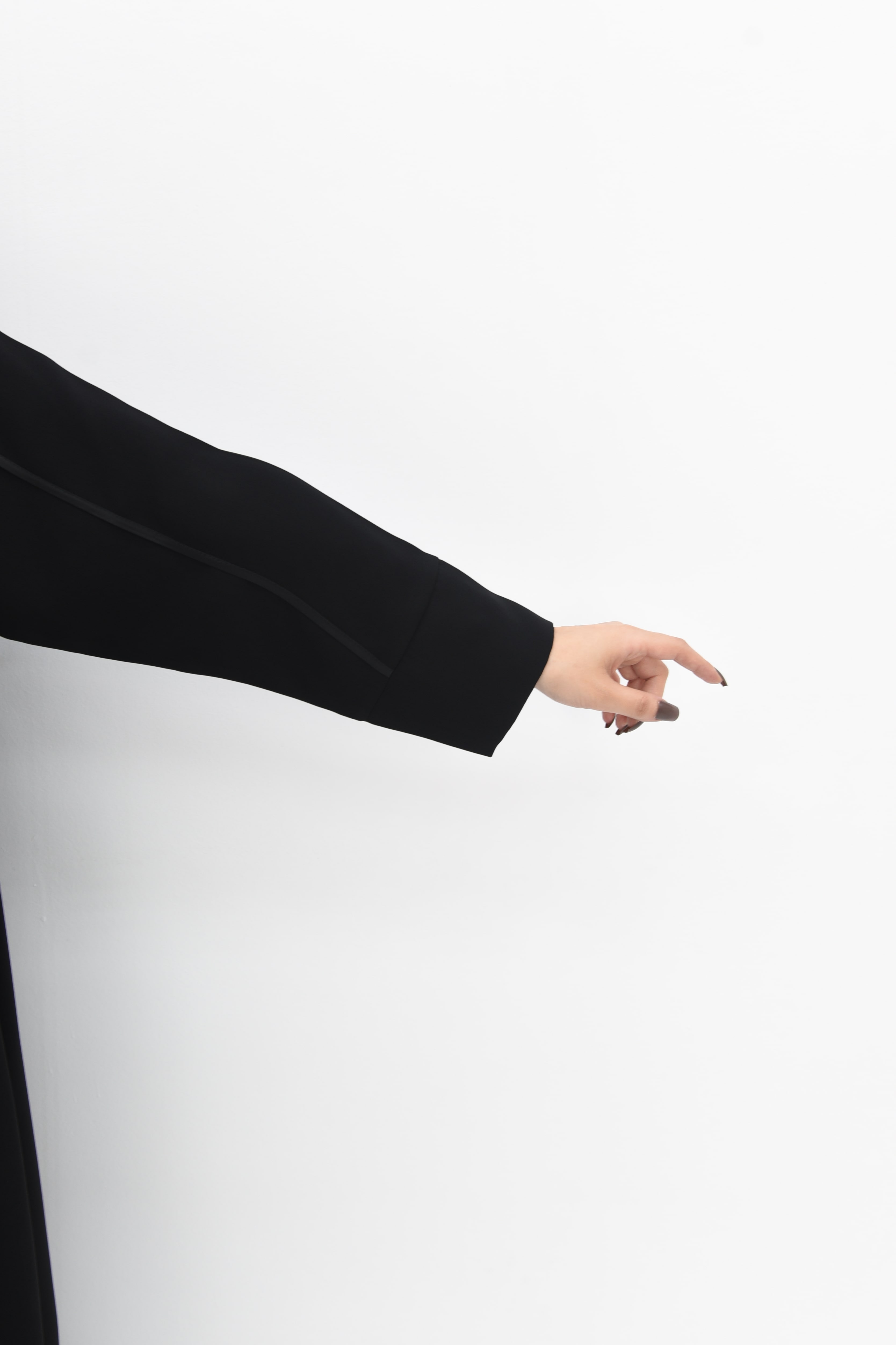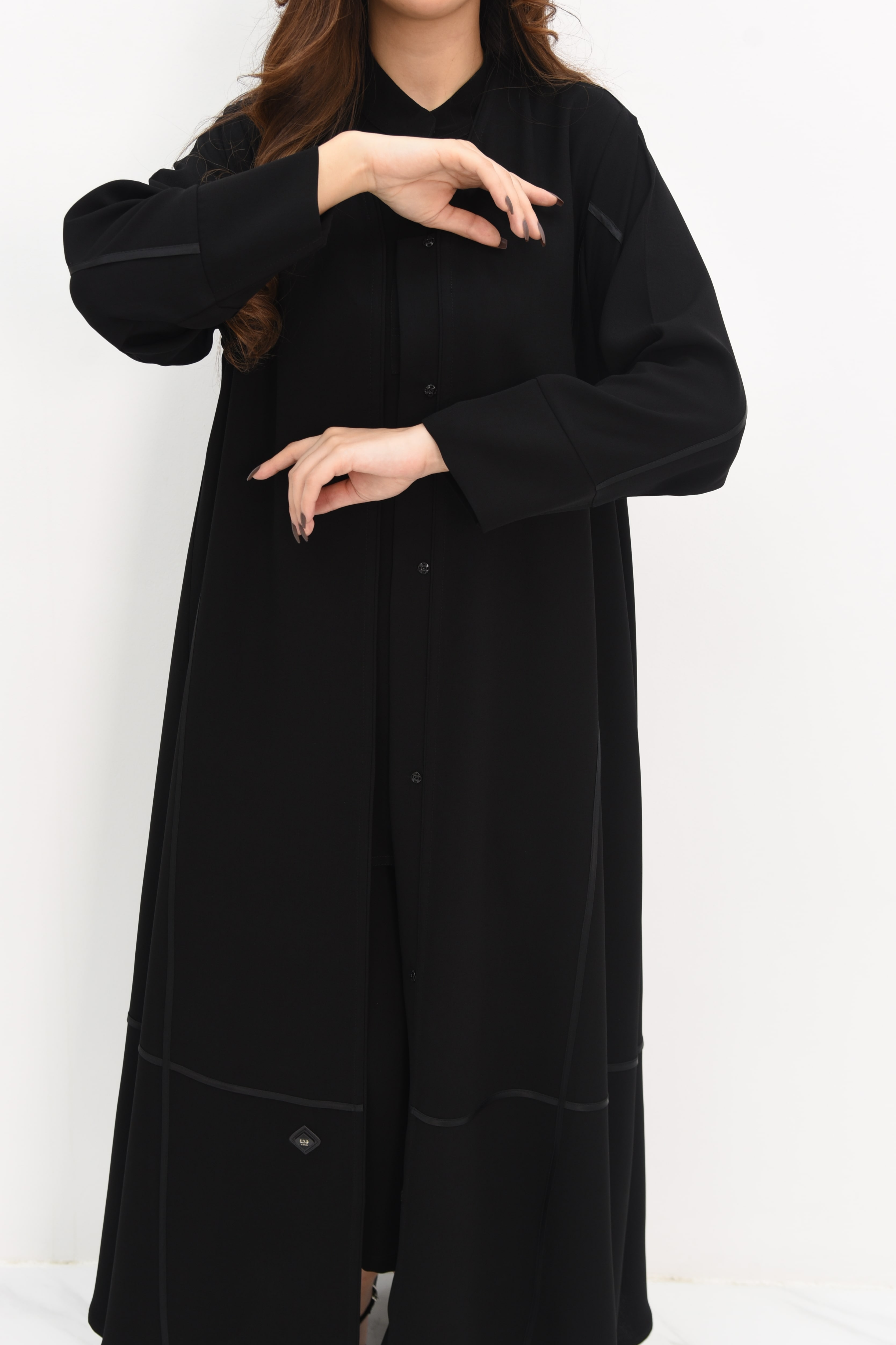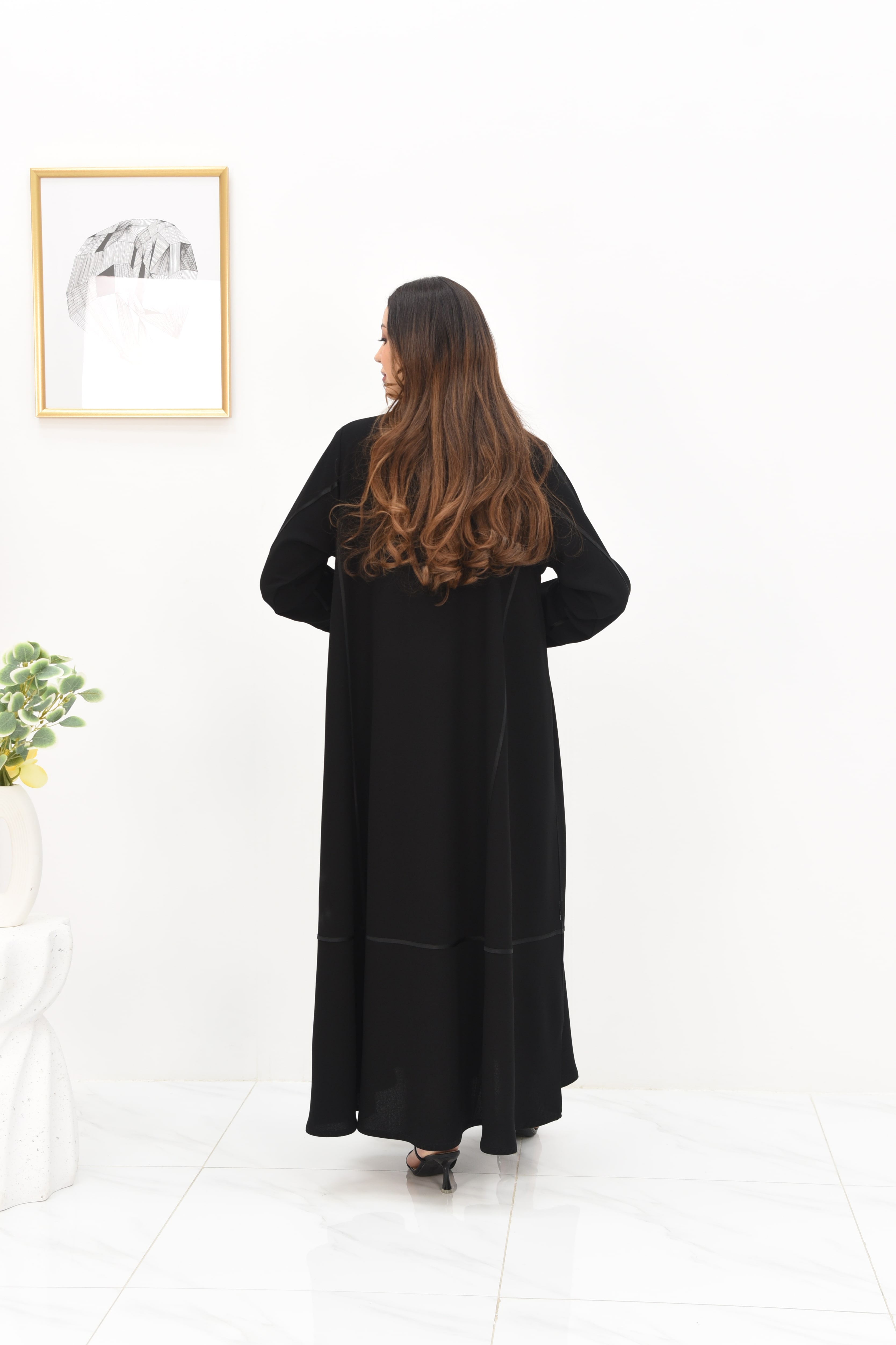وصف العباية: عباية انيقة بقماش كريب، تأتي بتصميم فريد يجمع بين الأناقة والعملية، مع أكمام عادية بشريط لامع تضفي لمسة مميزة. مصنوعة بدقة من قماش عالي الجودة لتمنحك الراحة والأناقة في آن واحد. تتميز بقَصَّتها الأنيقة والعصرية التي تناسب مختلف المناسبات.
