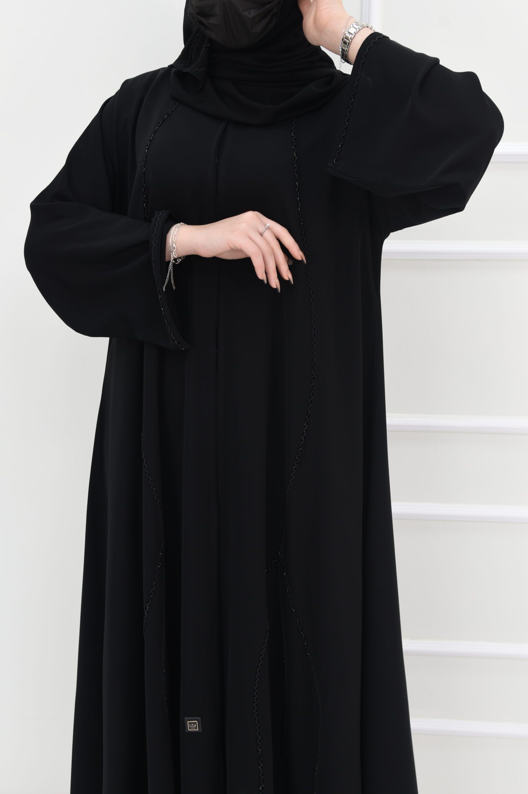وصف العباية: عباية ساحرة مصممة من قماش نواعم بلاس، يتميز بملمسه ناعم على البشرة. تأتي العباية بتصميم الفخم، وتبرز جمالها بفضل تطريز دقيق يزين ارجاء العباية، مما يمنح طابعًا فريدًا وأنيقًا يجعلها لافتة وجميلة.