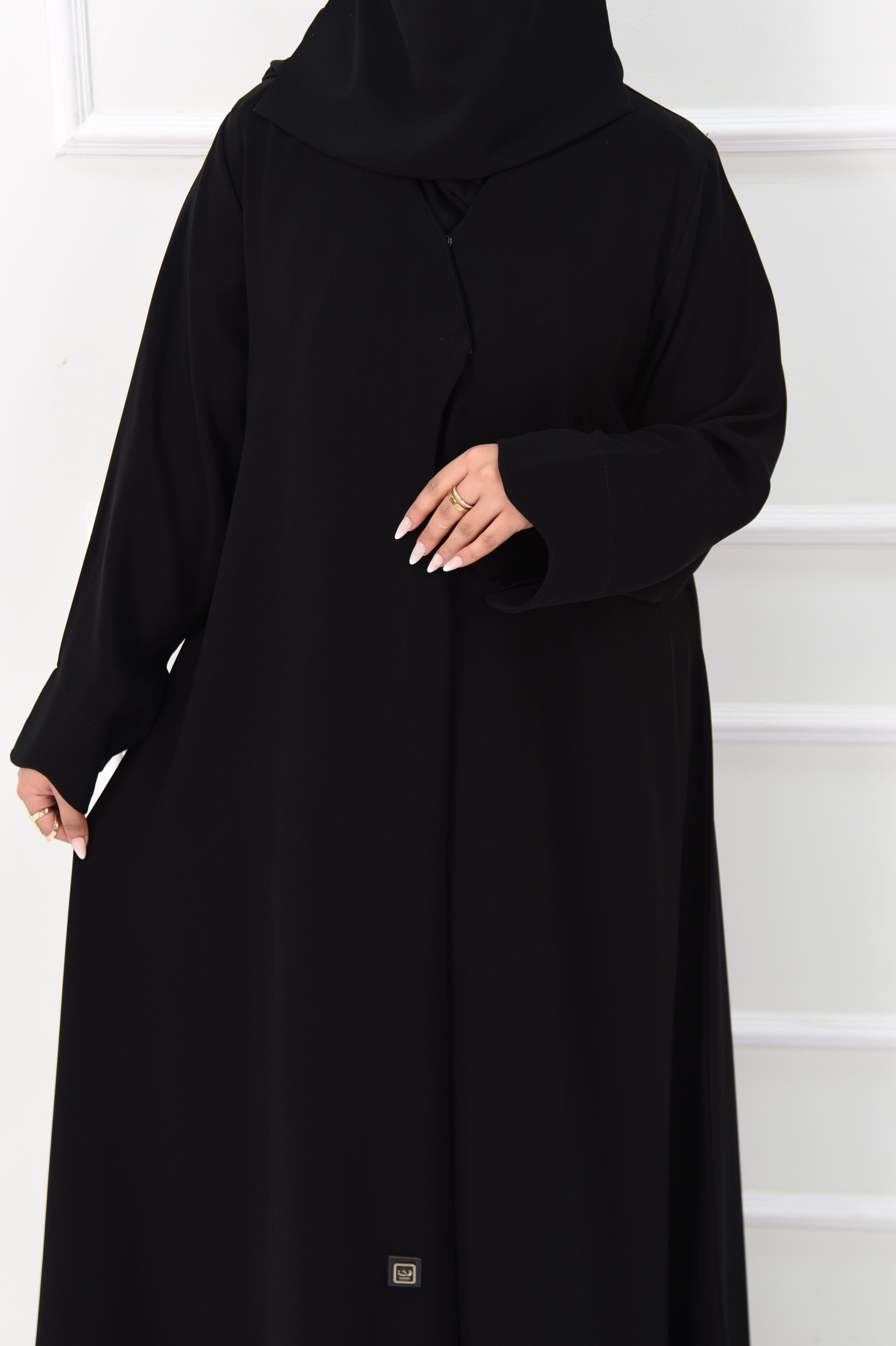 عباية سادة بحواف منحنية على الصدر والاكمام