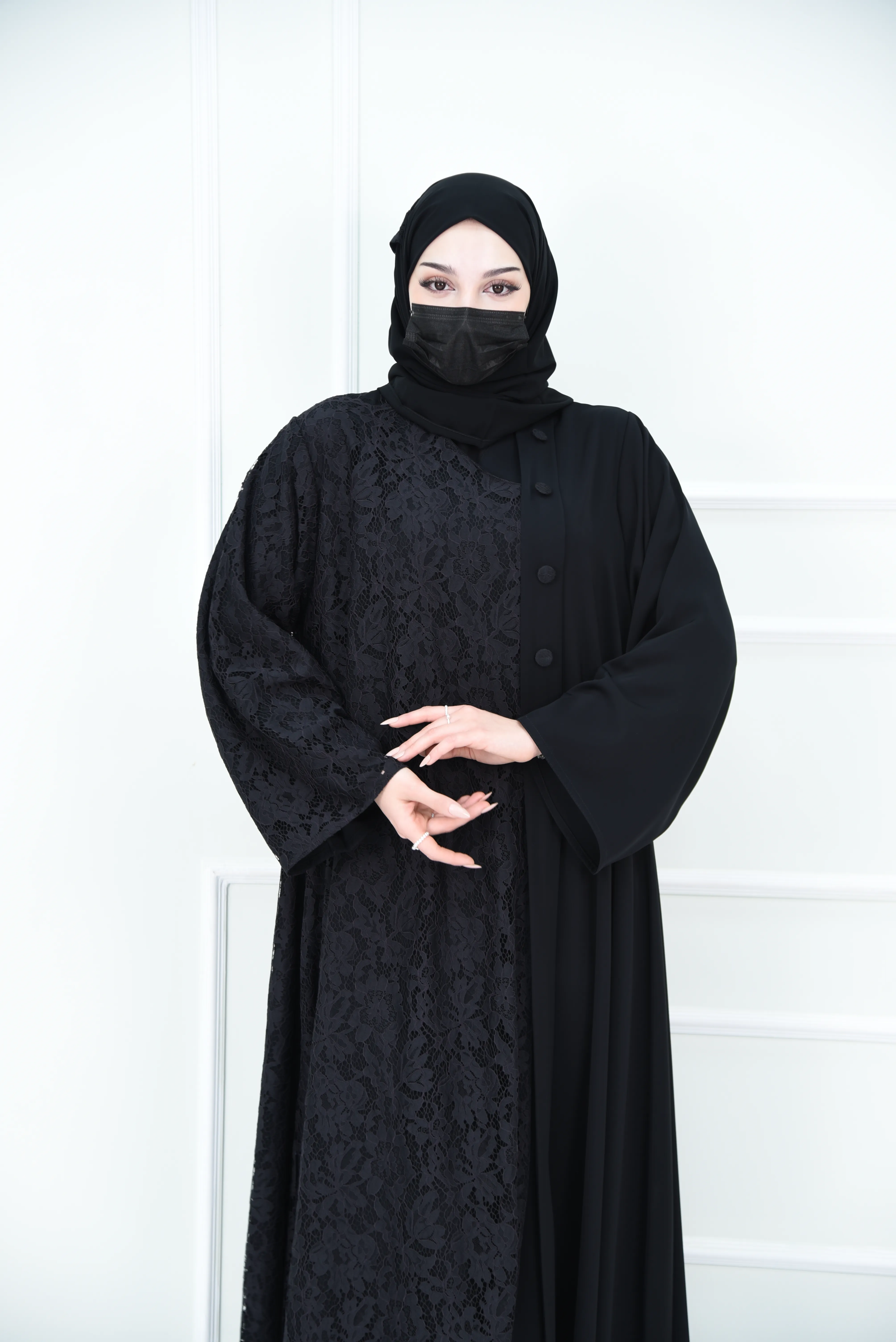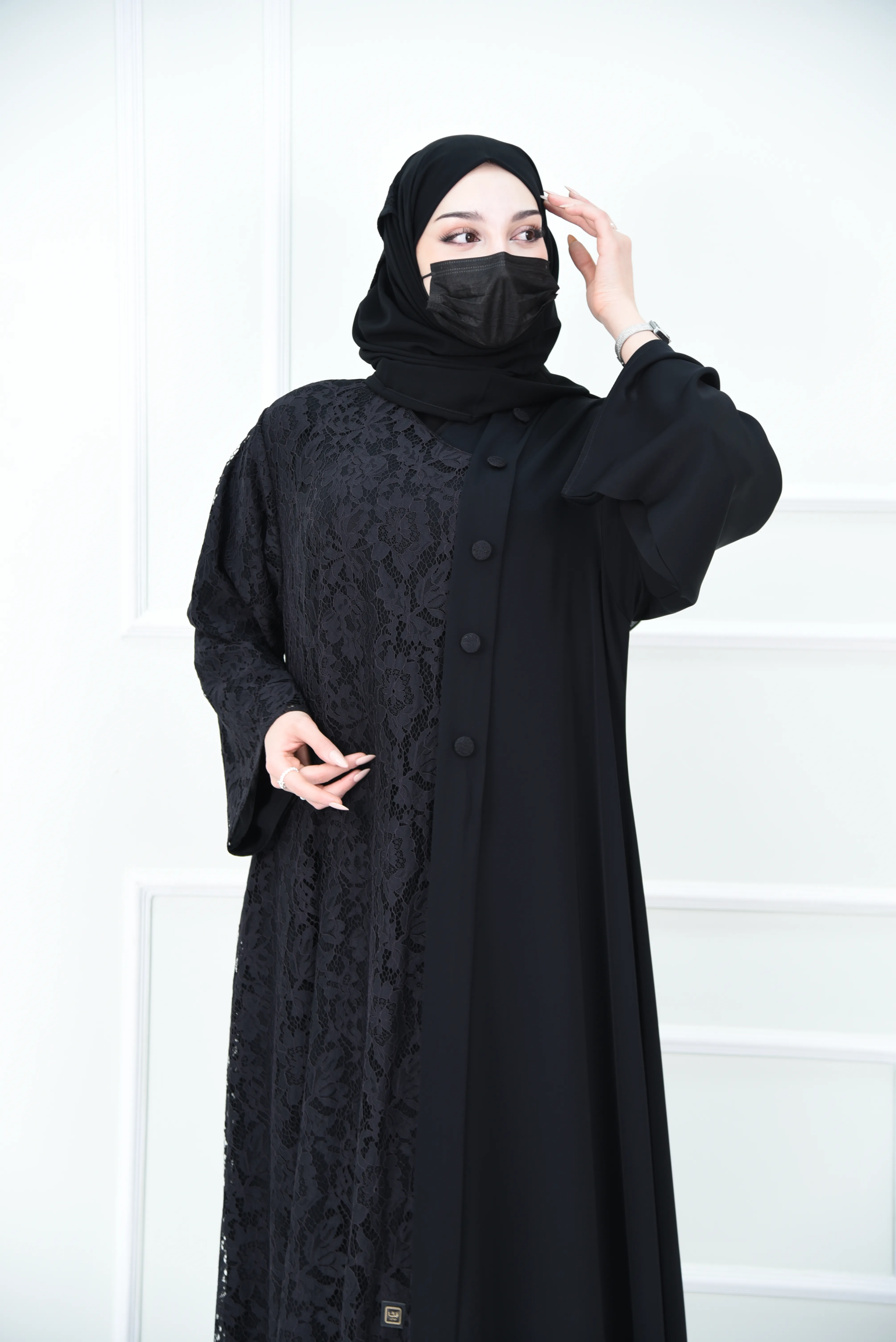 هل الدانتيل يغطي كامل العباية؟