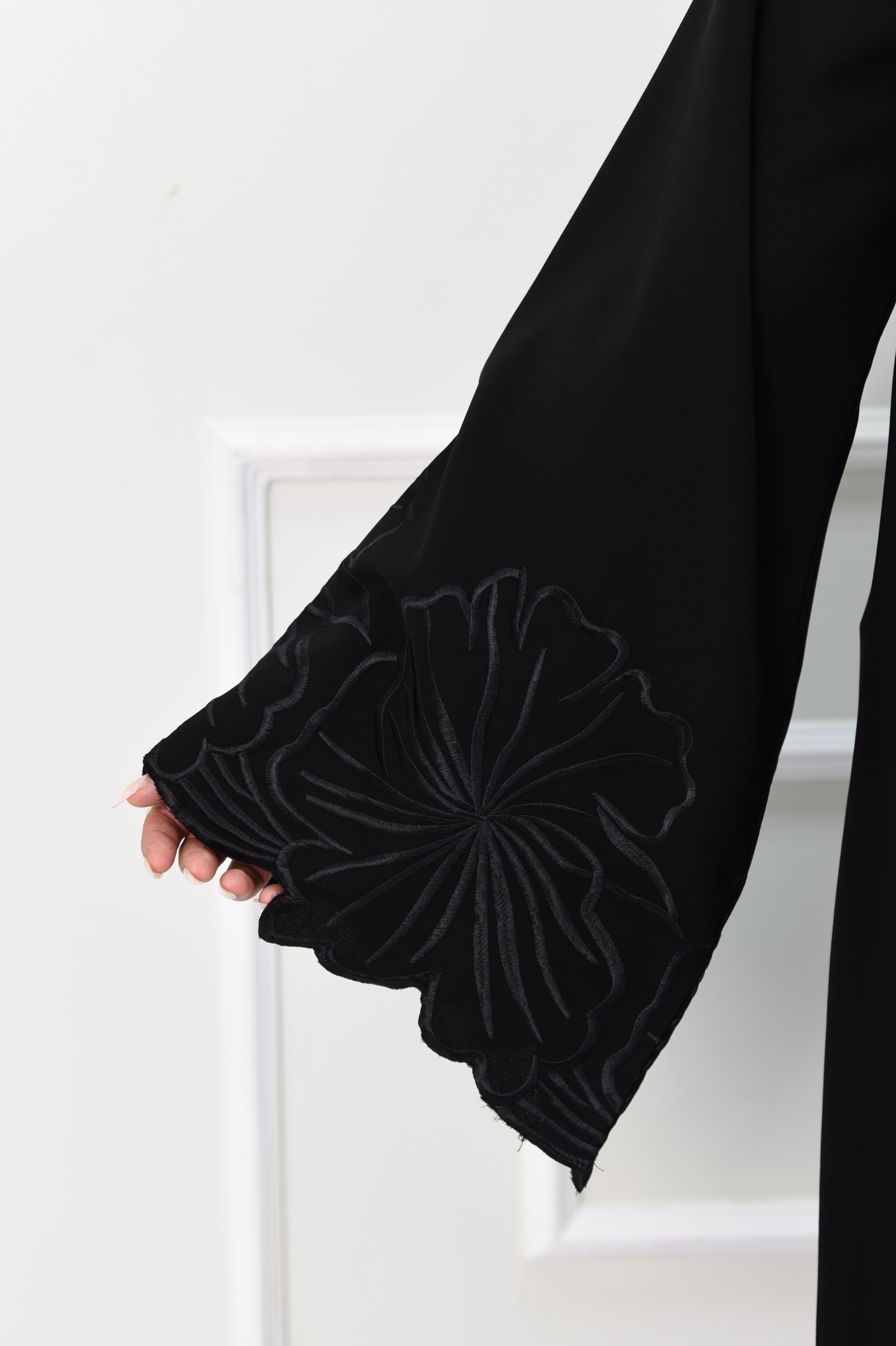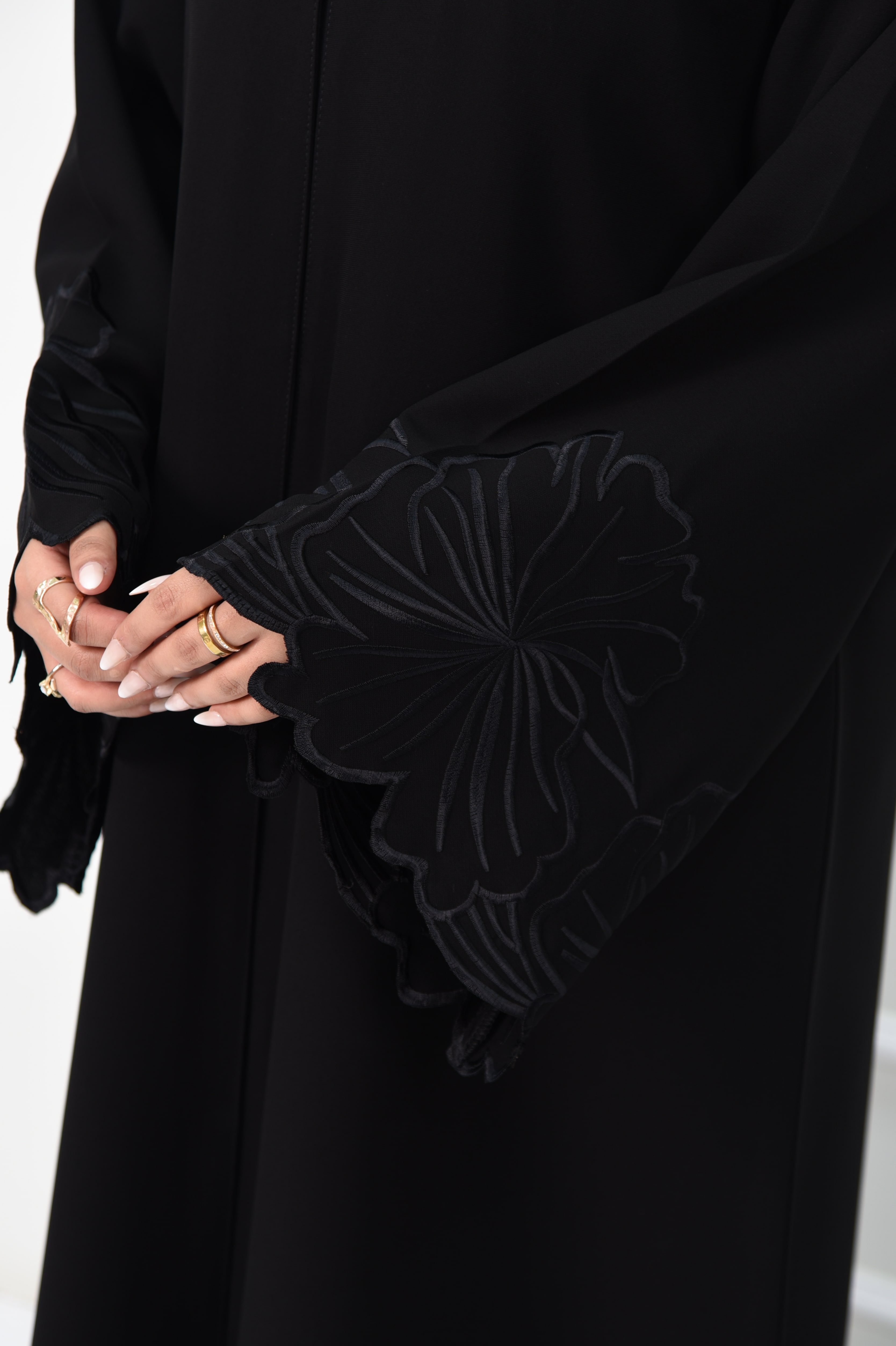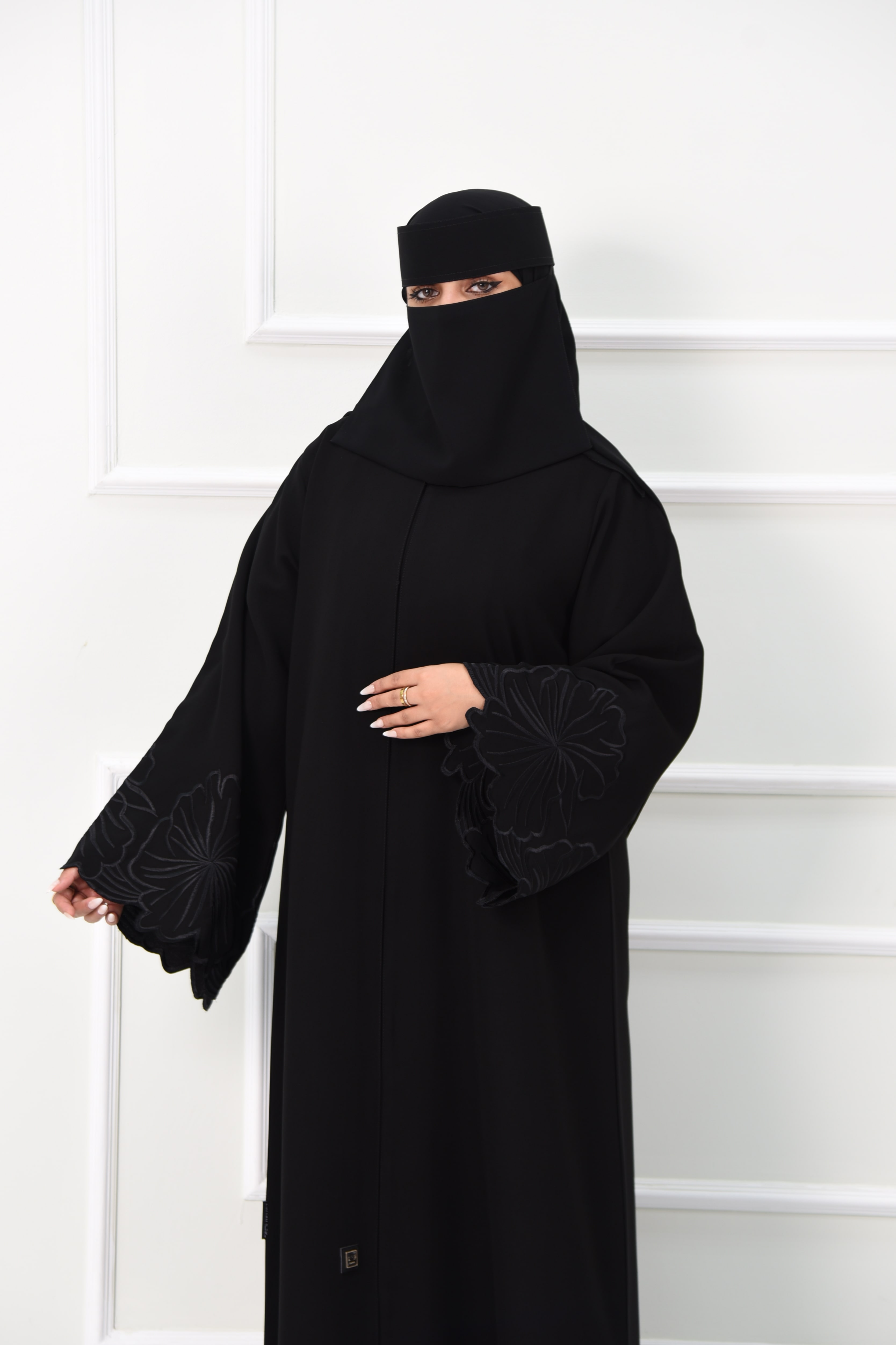 تأتي هذه العباية كريب مناسبات من قماش فكتوريا الفاخر المعروف بانسيابيته ولمعانه الراقي، وتتميّز بتطريز كمبيوتر دقيق على الأكمام يضفي لمسة فخامة وجمال لا يُقاوم.