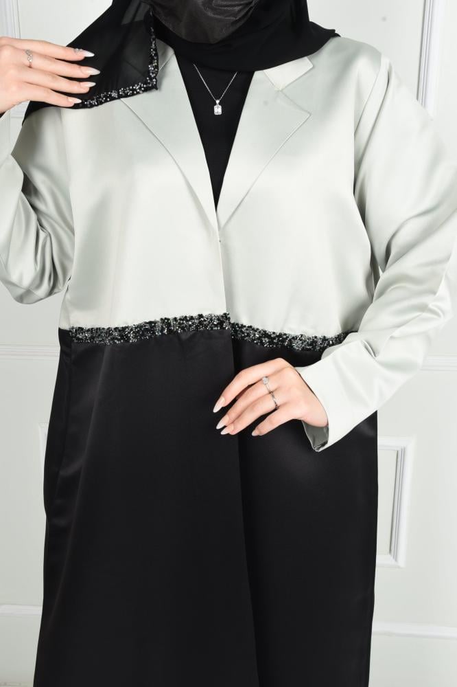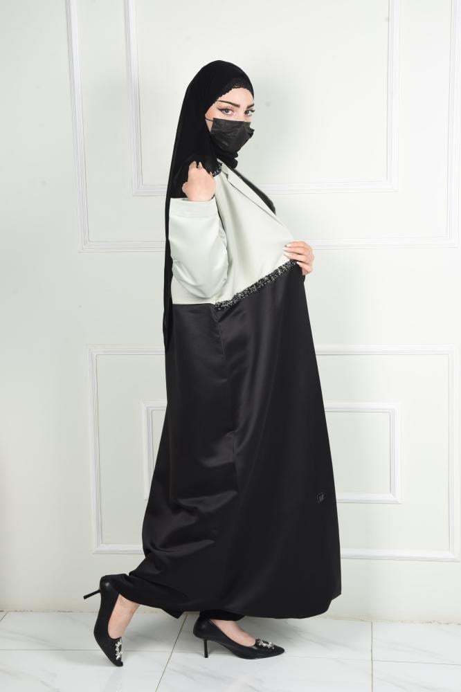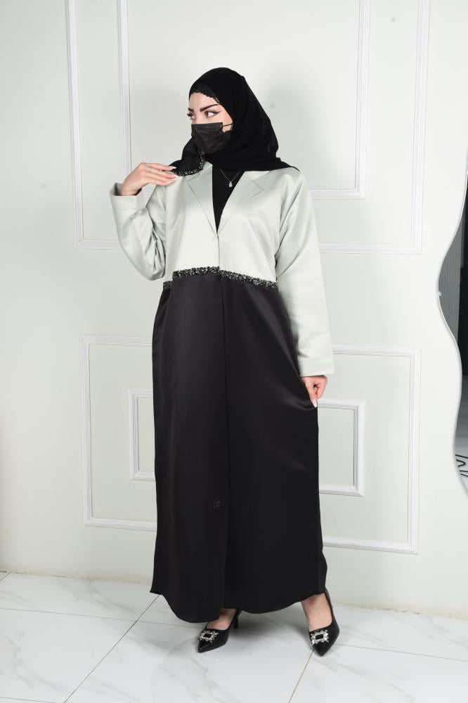عباية كريب  بلونين زيتوني وأسود وتطريز خرز