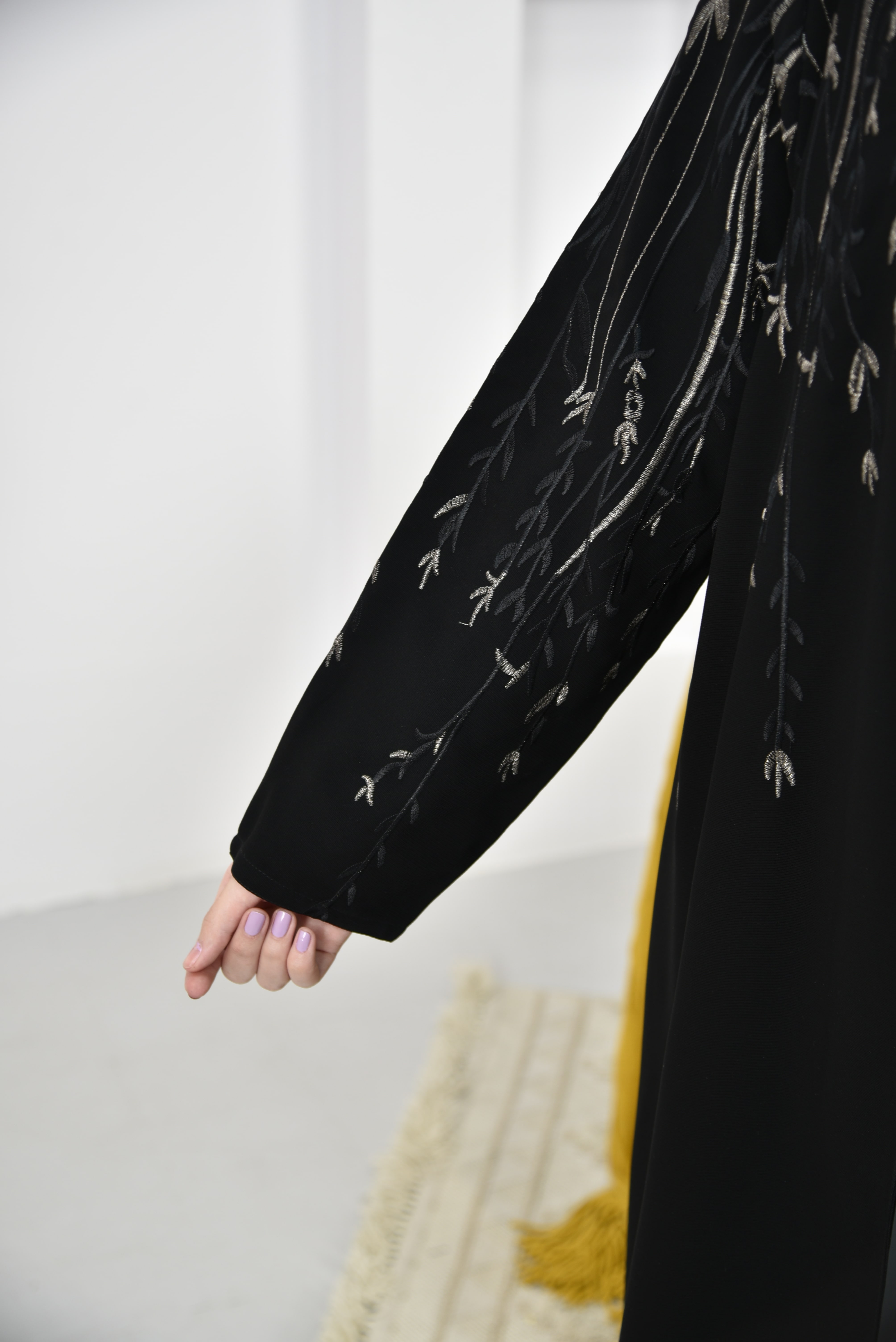 وصف العباية: عباية كتف فاخرة بقماش ملكي ينساب بنعومة، مزينة بتطريز ذهبي فاخر من الأمام والخلف، يضفي عليها لمسة من الرقي والفخامة. الأكمام بتصميم أنيق، مزينة بتطريز متناسق يكمل جمال التفاصيل. خيار مثالي للمناسبات الخاصة والإطلالات الراقية.