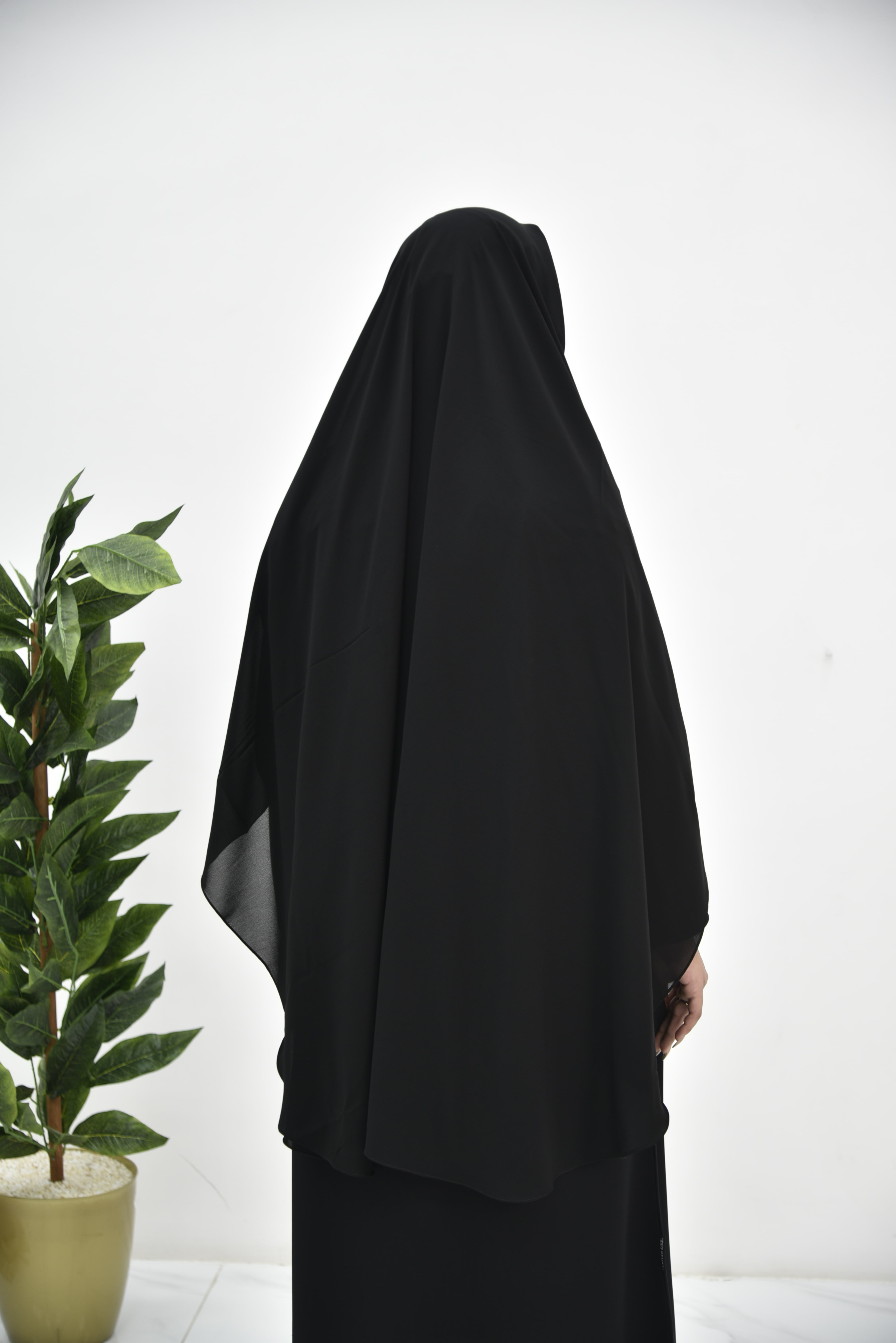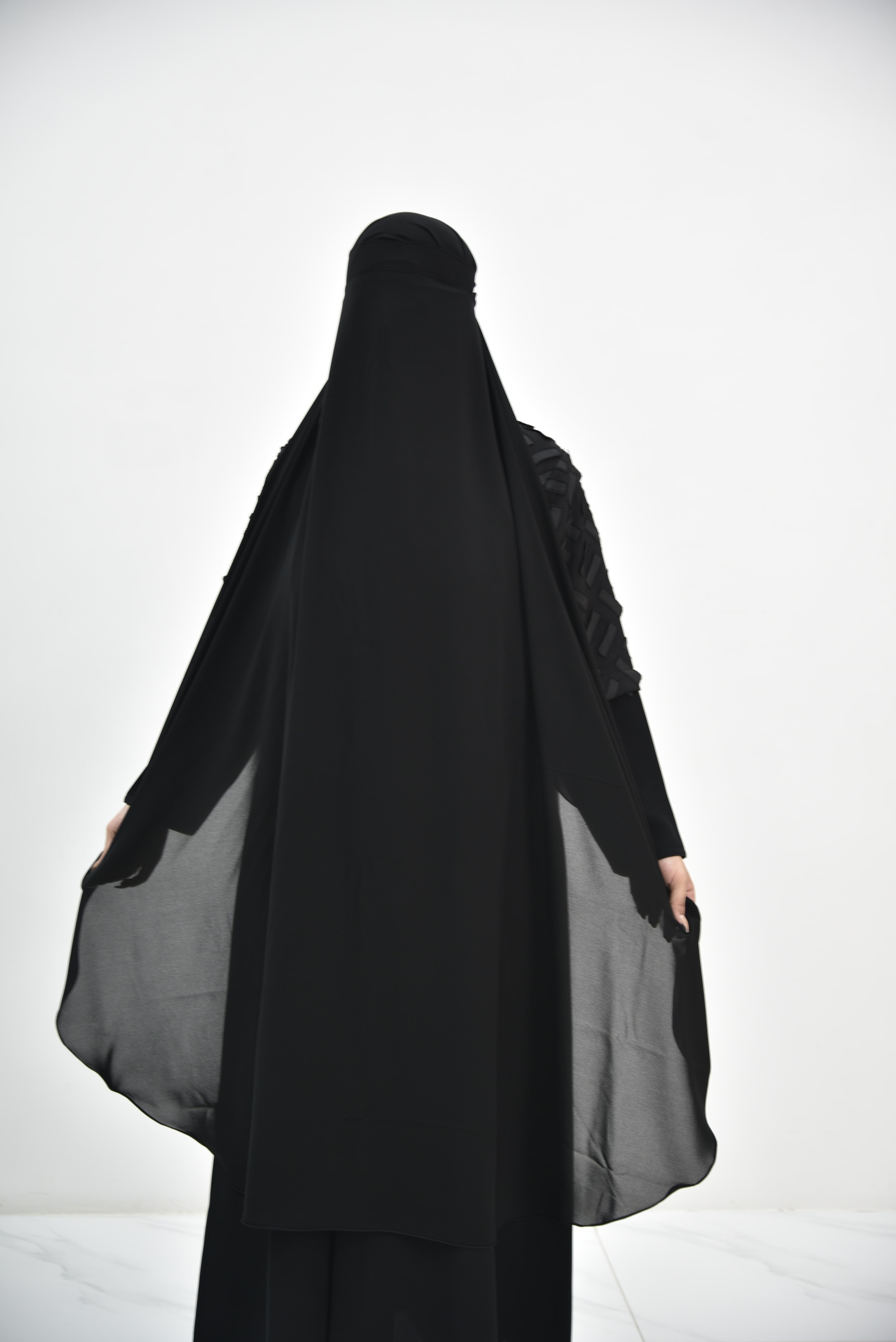 وصف النقاب: نقاب باب الحارة صُمم ليمنحك التغطية الكاملة في قطعة واحدة تجمع بين النقاب والخمار. يغطي الرأس والوجه والصدر بشكل واسع وعملي، ما يجعله بديلاً مناسبًا للطرحة والنقاب معًا. يتميز بتصميم مريح وثابت وسهل الارتداء للمشاوير اليومية والإطلالات المحتشمة.