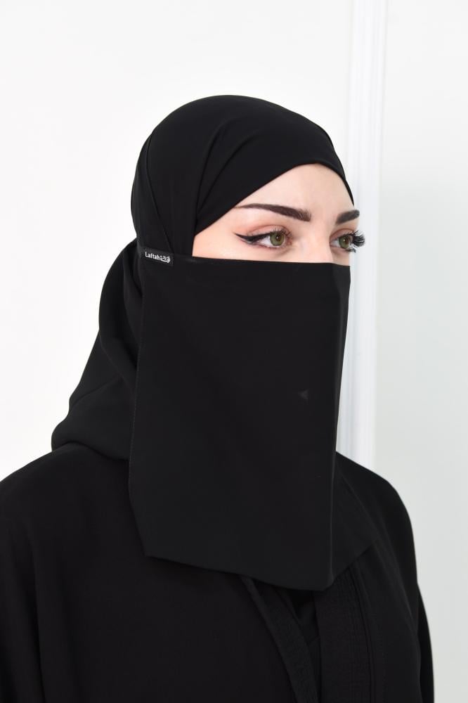 وصف اللثمة: نقاب لثمة بتصميم عملي مع شريط مطاطي لثبات مريح خلف الرأس. يتميز بخامة خفيفة ومناسبة للاستخدام اليومي، ويغطي الجزء السفلي من الوجه بشكل أنيق ومرن دون تقييد.
